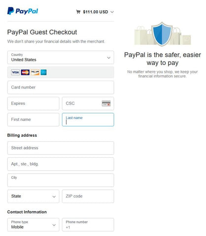 On the bottom of the PayPal page you will see the option to pay with a credit card without having to register: