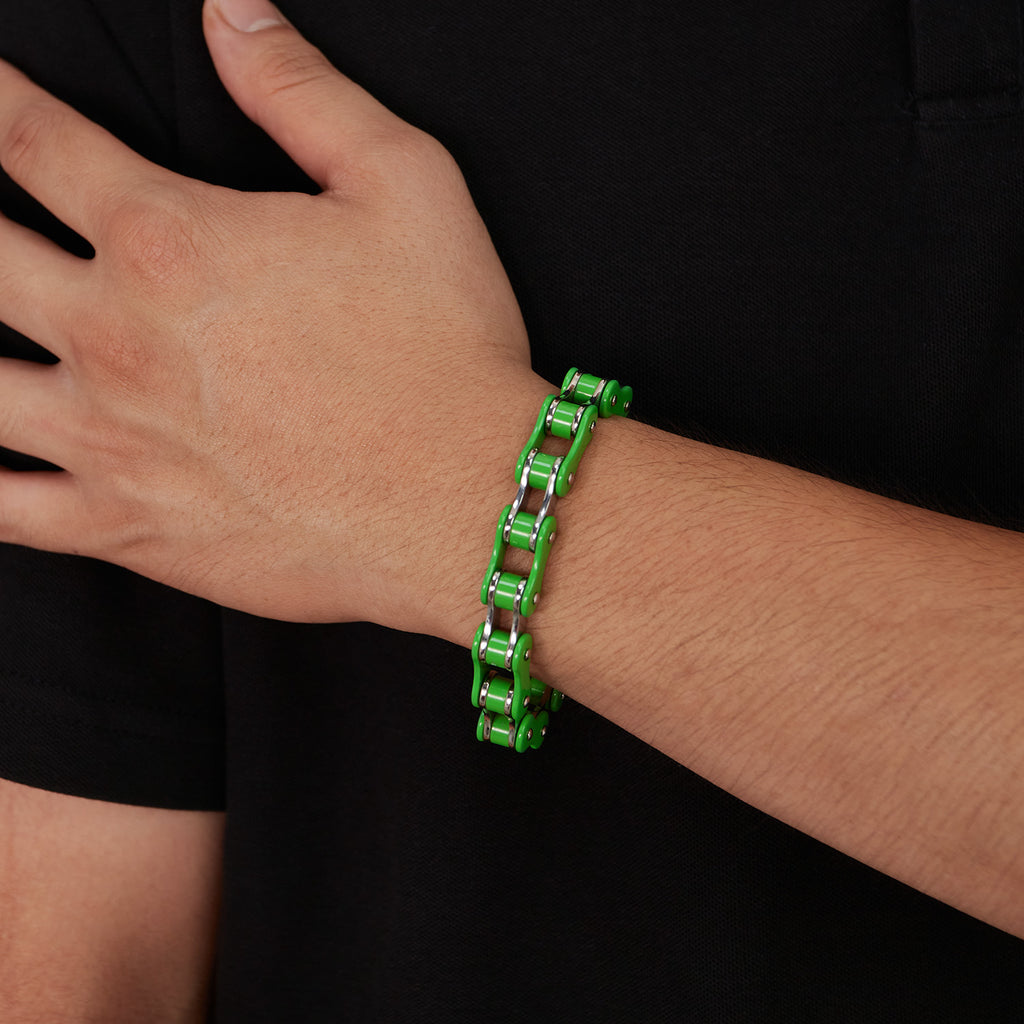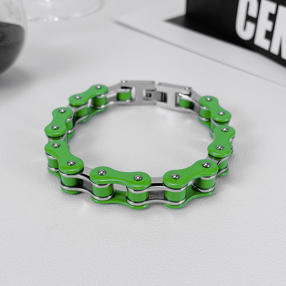 Crafted from premium titanium stainless steel, this men’s harley bike chain bracelet is the ultimate fusion of rugged durability and bold style. The striking green link accents add a fresh, modern edge to the classic biker-inspired design, making it a standout accessory for everyday wear or special occasions. Designed with smooth edges and a secure clasp, it offers comfort and confidence while maintaining a tough, masculine look. Perfect for bikers, rockers, or anyone with a daring sense of fashion, this bracelet complements casual and edgy outfits alike. Whether as a personal style statement or a thoughtful gift, it’s a powerful symbol of individuality and strength. Bold men’s titanium stainless steel harley bike chain bracelet with green accents. Durable, stylish, and perfect for bikers or edgy fashion lovers.