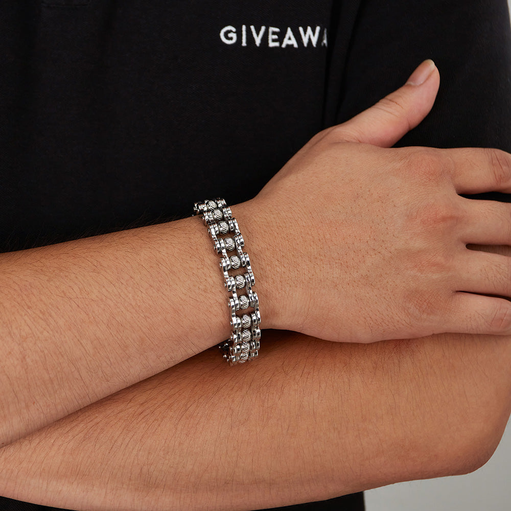 Men’s Harley Bike Chain Bracelet – Silver Link Biker Jewelry, Durable Heavy-Duty Wristband for Men