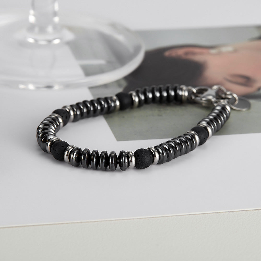 Crafted with premium titanium stainless steel, this men’s bracelet blends strength with style. Featuring sleek metallic discs and natural black lava stone beads, it delivers a bold, masculine look that’s perfect for everyday wear or special occasions. The adjustable lobster clasp ensures a secure and comfortable fit for most wrist sizes, making it both practical and stylish. Designed to complement casual outfits as well as formal attire, this bracelet adds a modern edge to any wardrobe. Its durable, tarnish-resistant build means it will keep its shine for years. A thoughtful gift choice for birthdays, anniversaries, or Father’s Day, this stainless steel bracelet offers timeless appeal with a contemporary touch.