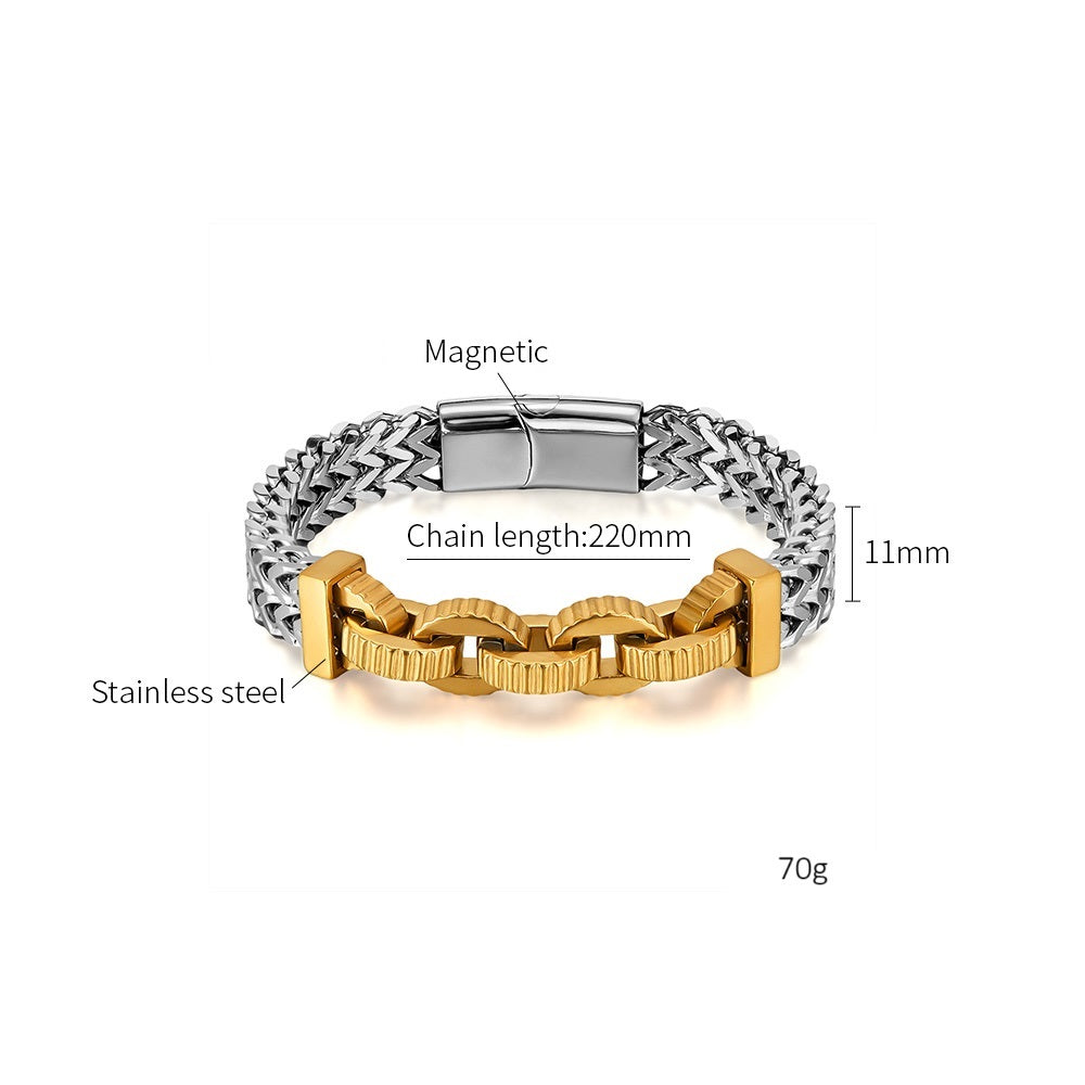 Add bold style to your look with this men’s stainless steel chain bracelet, featuring a two-tone black and silver link design. Crafted from premium stainless steel, it offers exceptional durability, tarnish resistance, and long-lasting shine. The heavy-duty Cuban chain style and secure fold-over clasp ensure both comfort and confidence for everyday wear. Rugged yet refined, this bracelet is perfect for pairing with casual outfits, business attire, or formal looks. Its modern black and silver finish makes it a standout accessory for men who want strength and sophistication in their jewelry. A versatile and timeless gift, this stainless steel bracelet is ideal for birthdays, anniversaries, Father’s Day, or any special occasion.