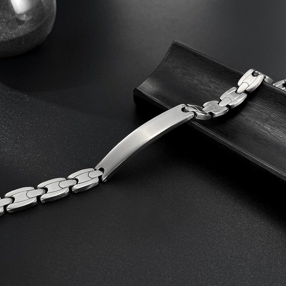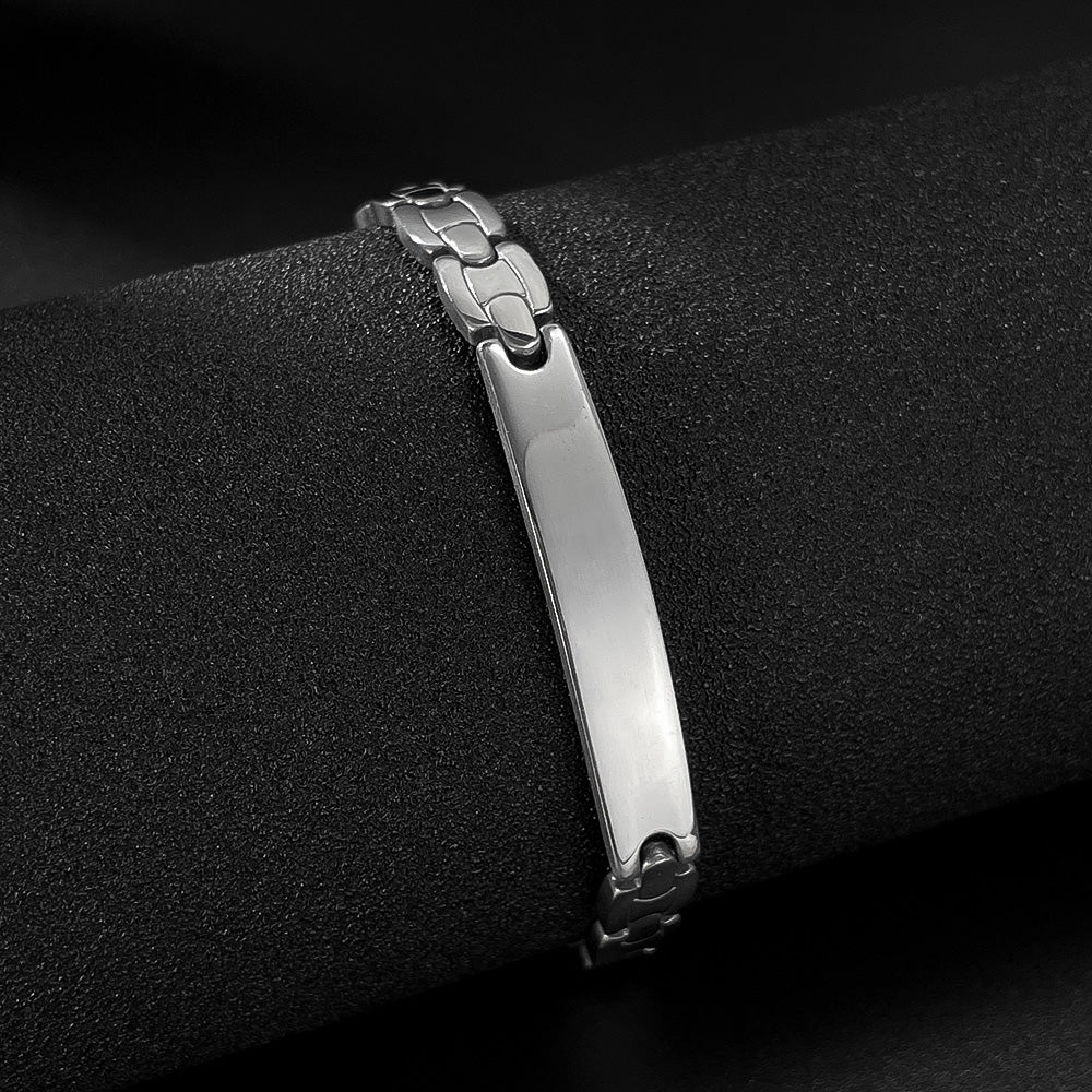 Elevate your style with this men’s titanium stainless steel bracelet, featuring a bold brushed finish and sleek ID plate design. Crafted from high-quality, hypoallergenic materials, it offers durability, corrosion resistance, and skin-friendly comfort—ideal for daily wear. The clean, masculine link structure gives it a modern, versatile look that pairs perfectly with both casual and formal outfits. Lightweight yet strong, it feels great on the wrist and stays secure with a reliable clasp. Whether worn alone or personalized with engraving, it’s a timeless piece made to impress. A perfect gift for birthdays, anniversaries, or holidays, this bracelet is designed for the confident man who values both style and substance.