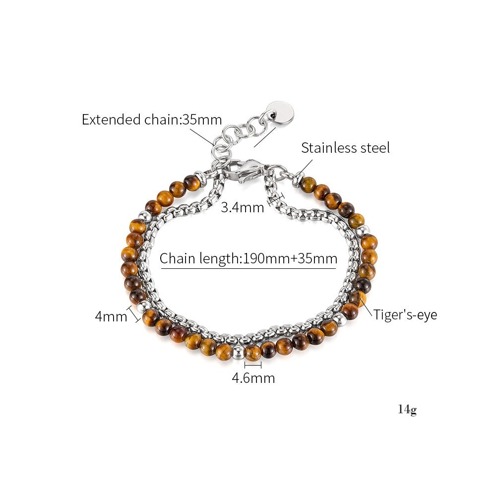 Titanium Stainless Steel & Tiger‑Eye Bead Double‑Chain Bracelet for Women – Adjustable Layered Hypoallergenic & Tarnish‑Resistant Jewelry Gift