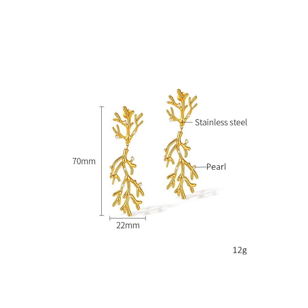 Embrace ocean-inspired elegance with these women’s gold coral branch pearl drop earrings, designed to capture the beauty of the sea in a bold and graceful style. Featuring long, detailed coral branches finished in radiant gold plating and accented with delicate simulated pearls, these earrings add both sophistication and movement to any look. Crafted from durable alloy with premium gold plating, they resist tarnishing and maintain brilliant shine. Lightweight and hypoallergenic, they are safe for sensitive ears and comfortable for all-day wear. Perfect for weddings, parties, beach vacations, or elevating everyday outfits, these coral pearl earrings are versatile and eye-catching. A thoughtful gift for birthdays, anniversaries, or special occasions, they are a must-have accessory for women who love statement jewelry.