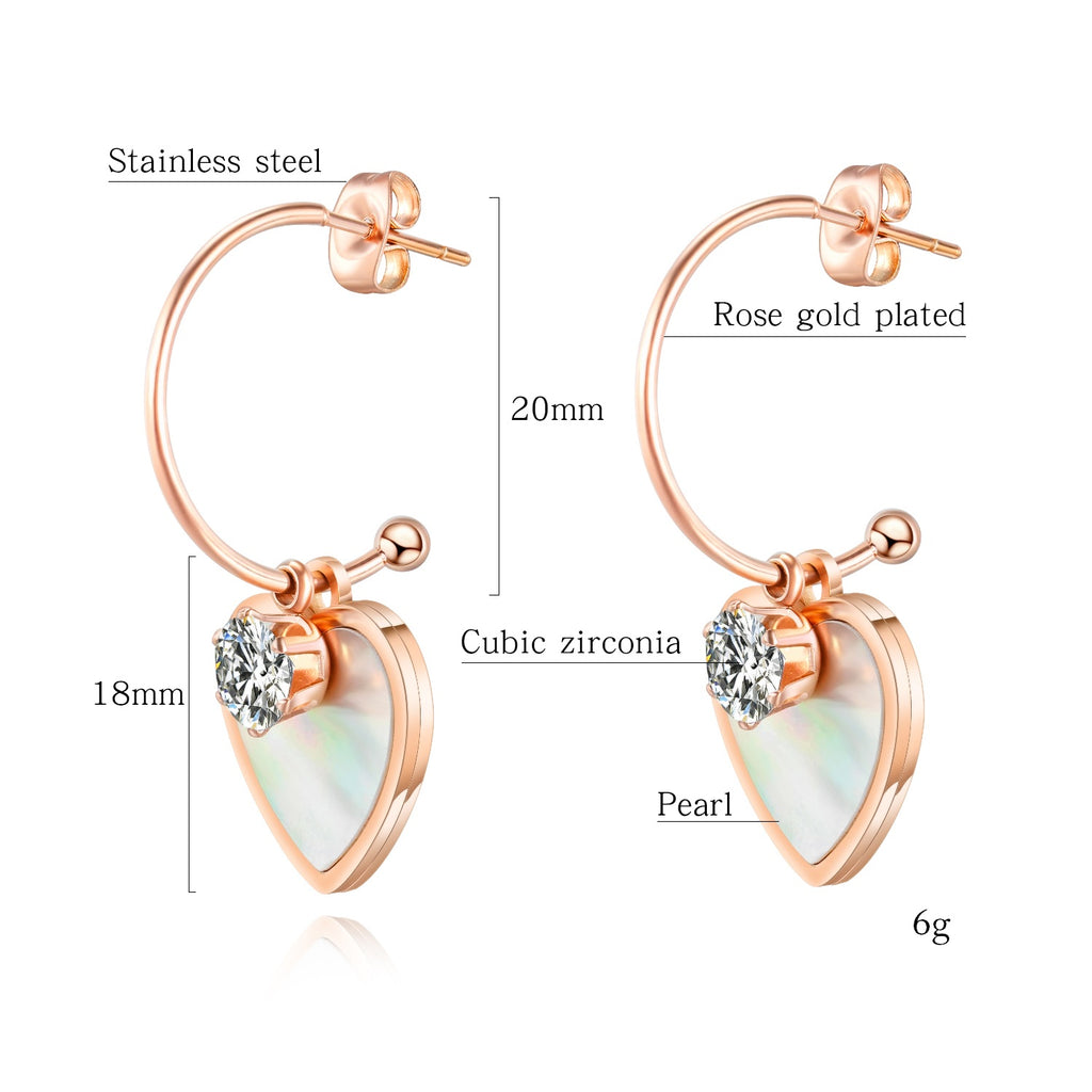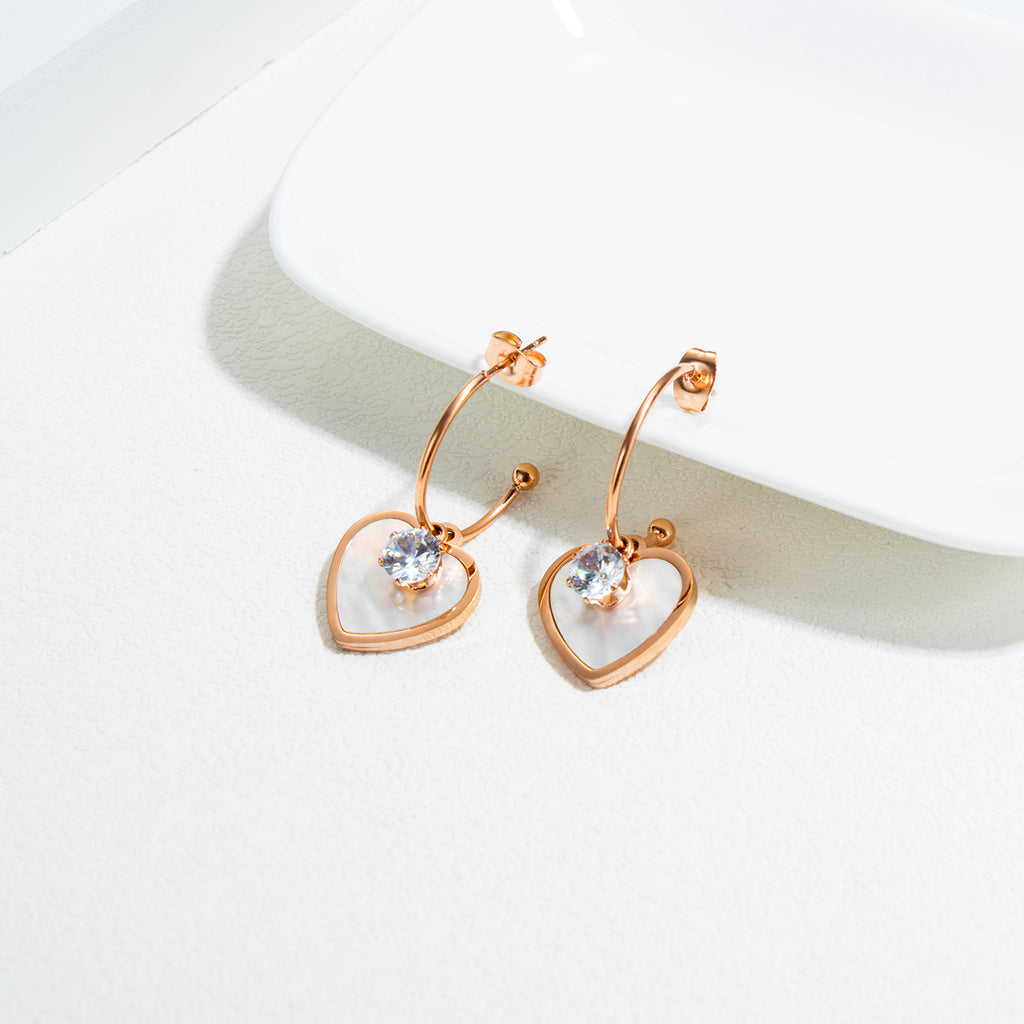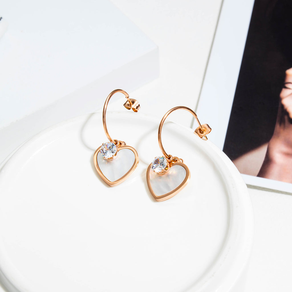 Women's Fashion Rose Gold Heart Drop Earrings
