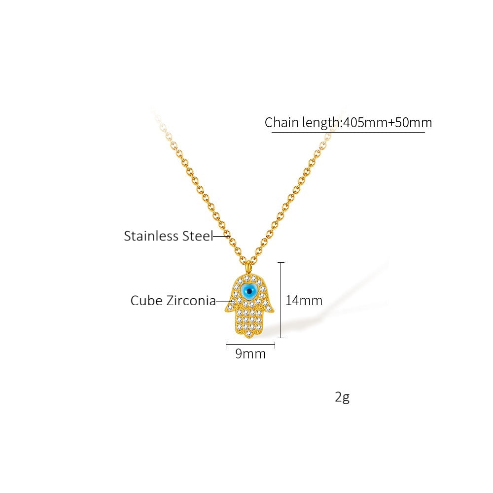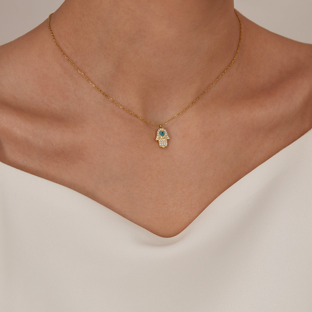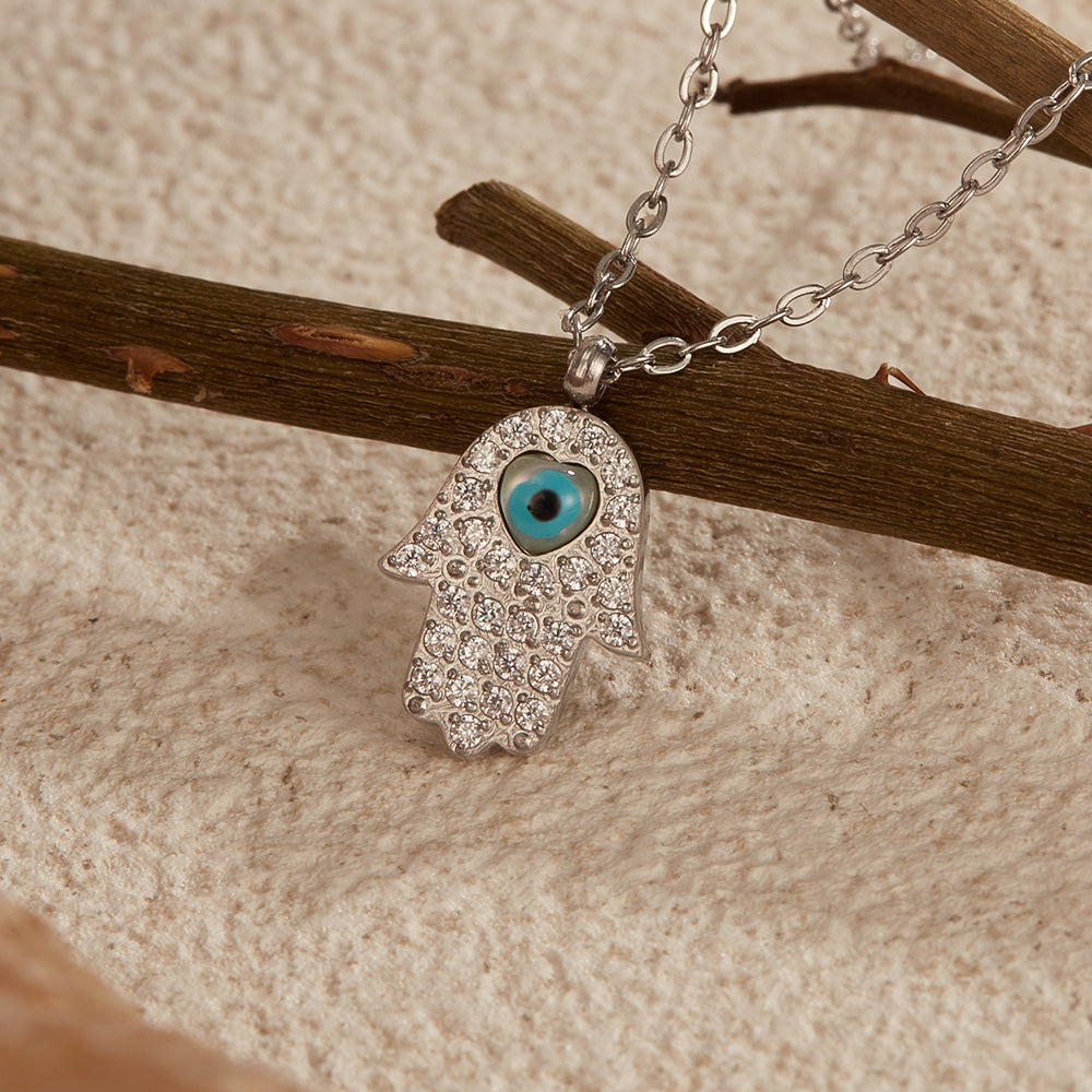 Add a touch of elegance and protection to your everyday style with this stunning Evil Eye Hamsa Hand Pendant Necklace. The pendant features sparkling crystals and a bold blue evil eye at its center, symbolizing strength, blessings, and positive energy. Crafted from premium stainless steel with a sterling silver finish, it is hypoallergenic, lead-free, and nickel-free, ensuring safe wear for sensitive skin. Designed to suit both casual outfits and special occasions, this versatile necklace layers beautifully or shines on its own. Arriving in gift-ready packaging, it makes a thoughtful choice for birthdays, anniversaries, holidays, or meaningful milestones. More than jewelry, it’s a timeless keepsake that combines fashion with spiritual protection.