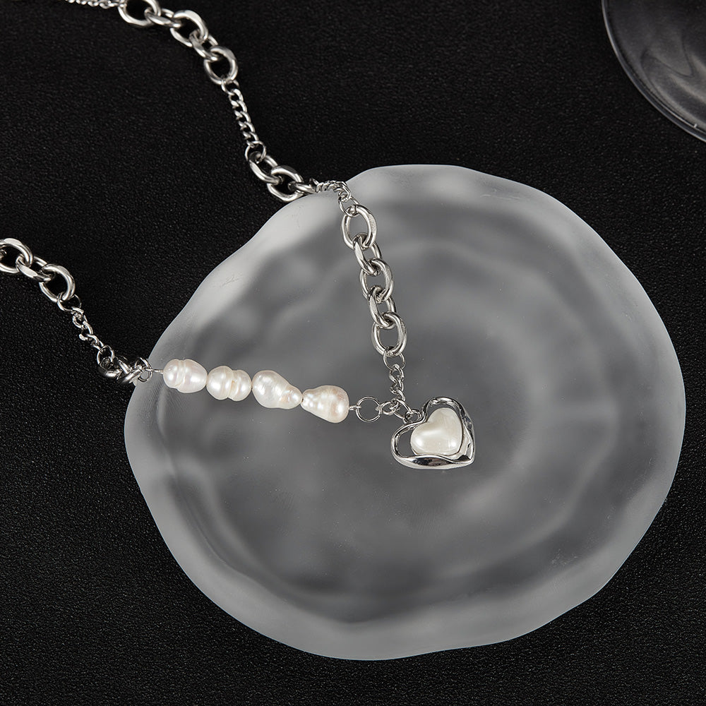 Women’s Simple Fashion Pendant Necklace with Freshwater Pearls and Heart Charm – Dainty Chain Jewelry for Everyday Wear