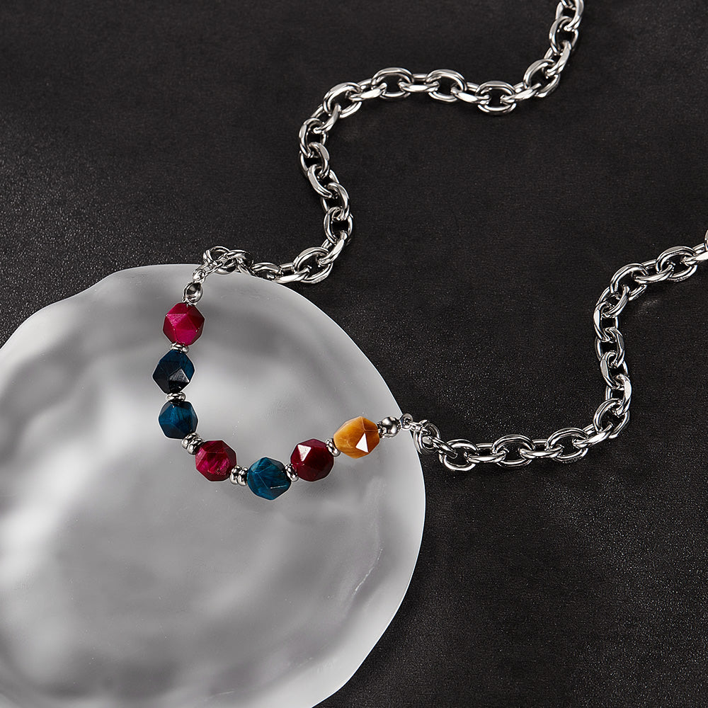 Add a pop of color to your style with this women’s titanium stainless steel necklace featuring vibrant faceted beads in red, blue, pink, and golden tones. The polished silver chain perfectly contrasts with the colorful beads, creating a playful yet elegant design suitable for everyday wear. Crafted from high-quality titanium stainless steel, this necklace is durable, tarnish-resistant, and hypoallergenic, making it safe and comfortable for sensitive skin. Lightweight and versatile, it can be worn alone as a statement piece or layered with other necklaces for a trendy, stacked look. Perfect for casual outfits, chic streetwear, or parties, this colorful beaded necklace also makes a thoughtful gift for birthdays, anniversaries, holidays, and special occasions.