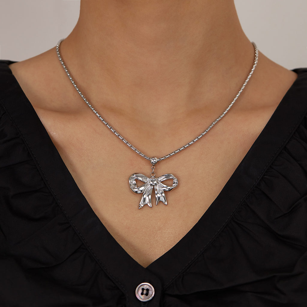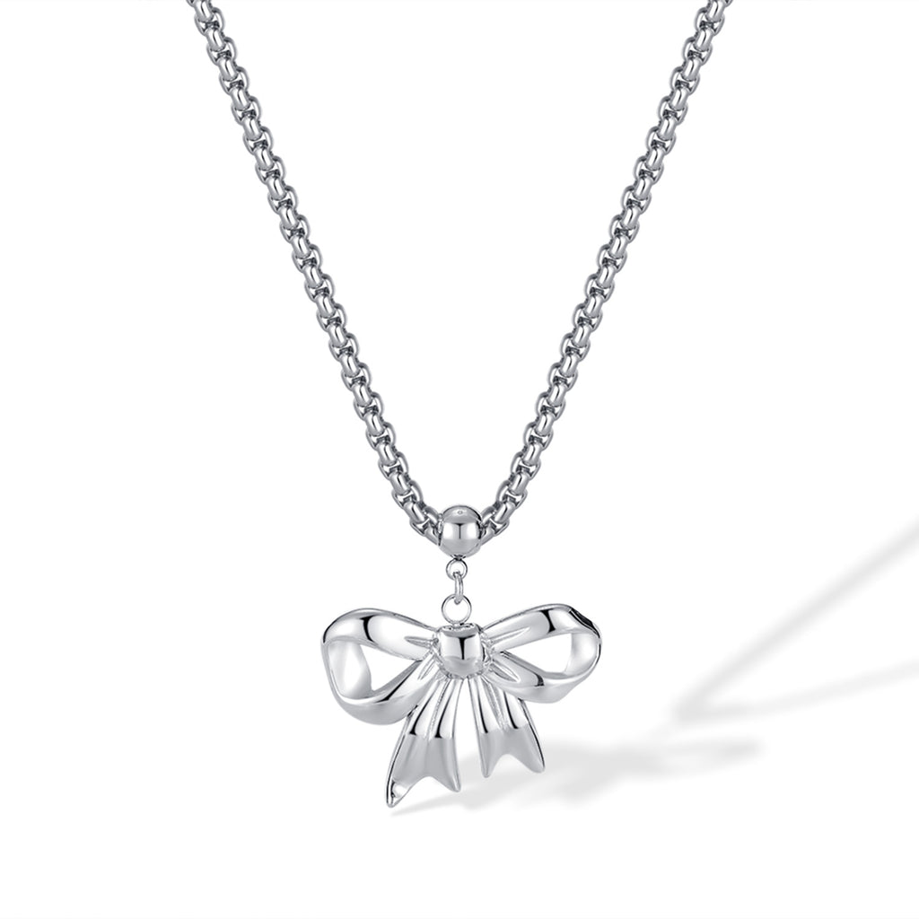 Women’s Lucky Bow Pendant Necklace – Silver Chunky Chain Statement Jewelry, Elegant and Durable Fashion Necklace for Women