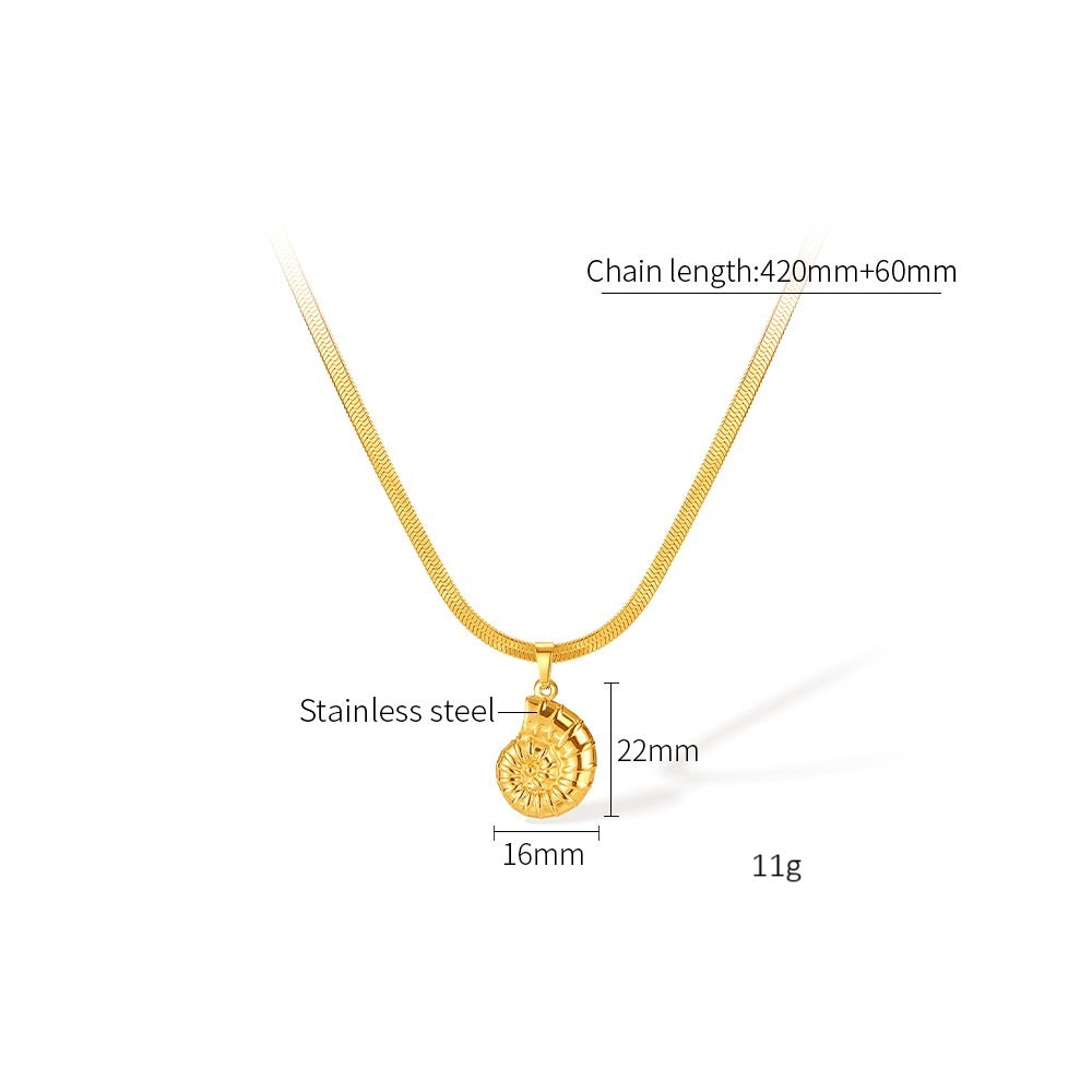 Women’s Ammonite Shell Pendant Necklace – Gold Snake Chain Fashion Jewelry, Durable Elegant Pendant Necklace for Women
